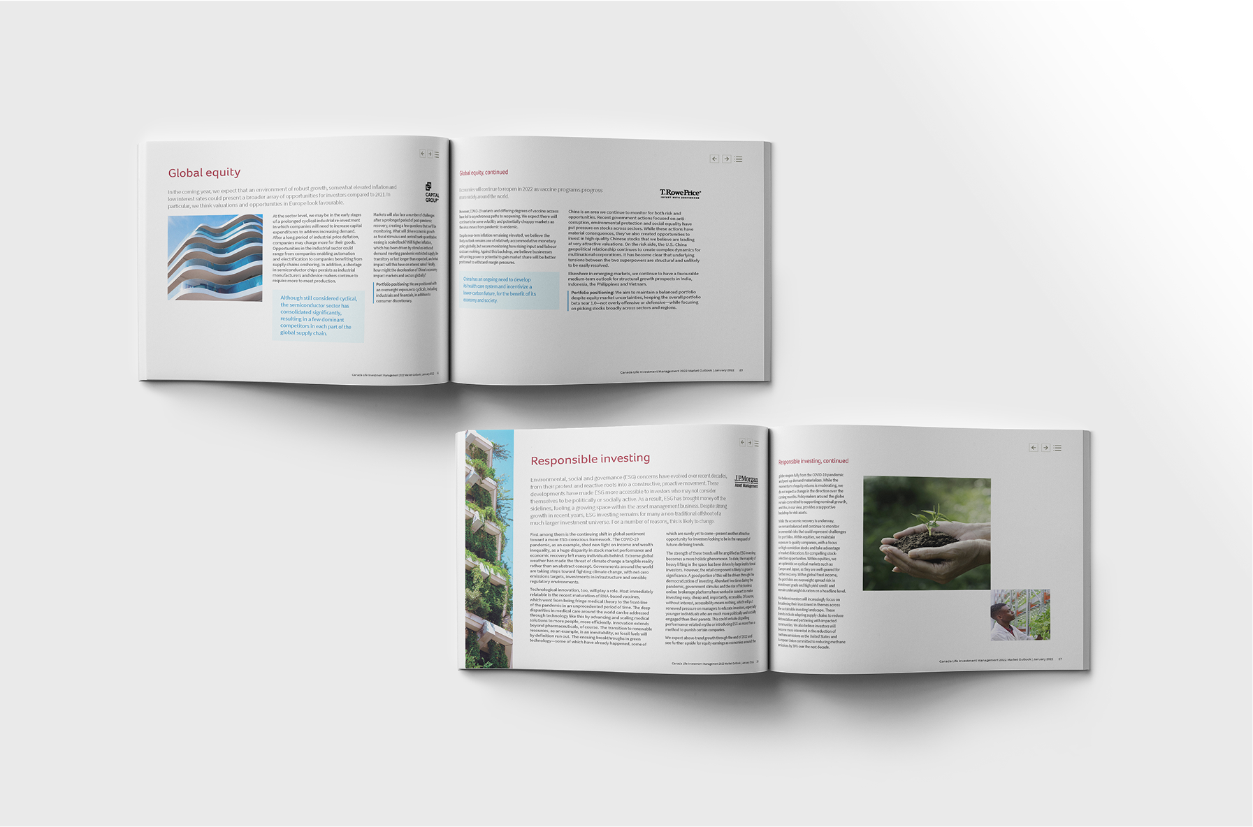 We first developed a series of questionnaires to extract key insights from sub-advisors. We then wrote and edited copy that was engaging and educational. We also laid out the piece in an elegant design. The market outlook went on to win an industry award.